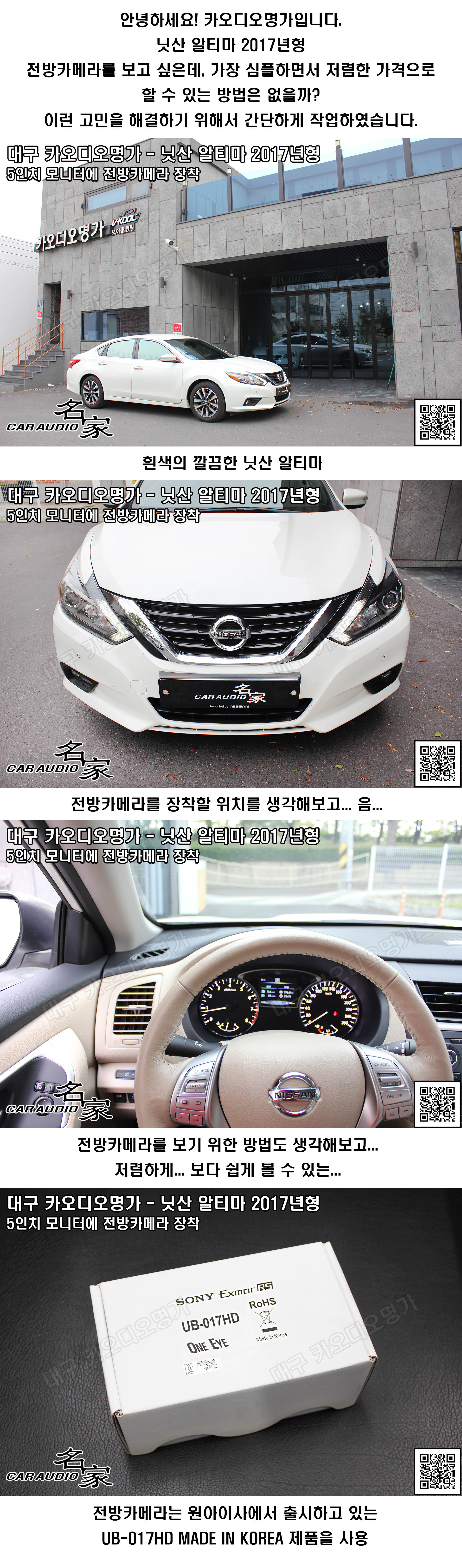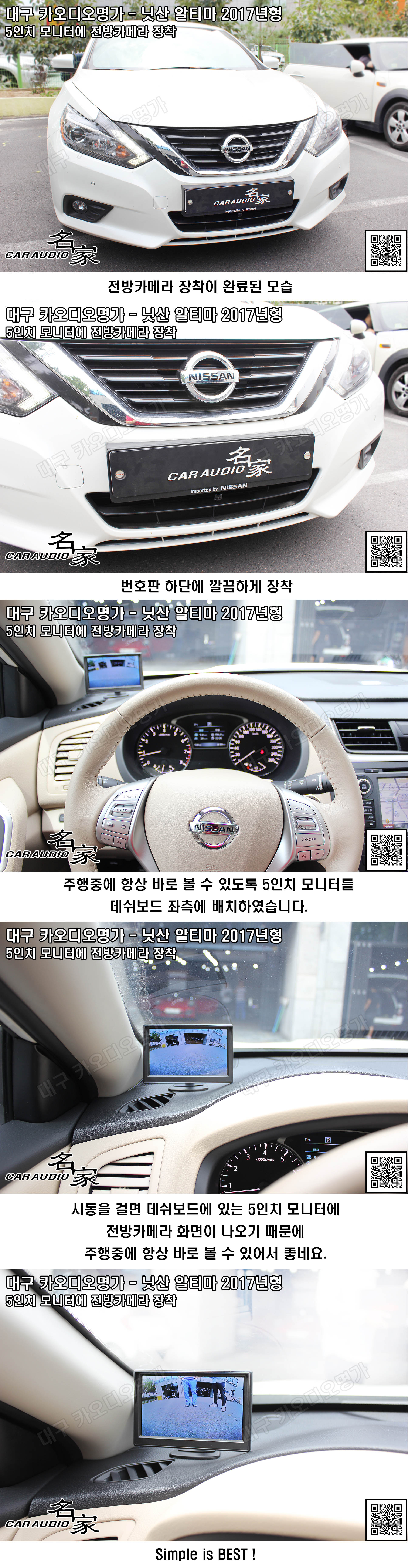 닛산 알티마 17MY 5인치 모니터와 전방카메라